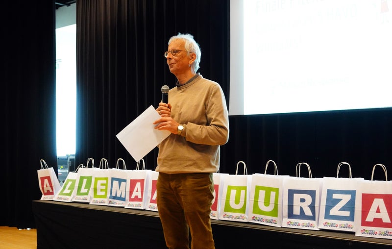 Ed Hoogkamer van Lisse Duurzaam, maakt de uitslag bekend van de winnaars