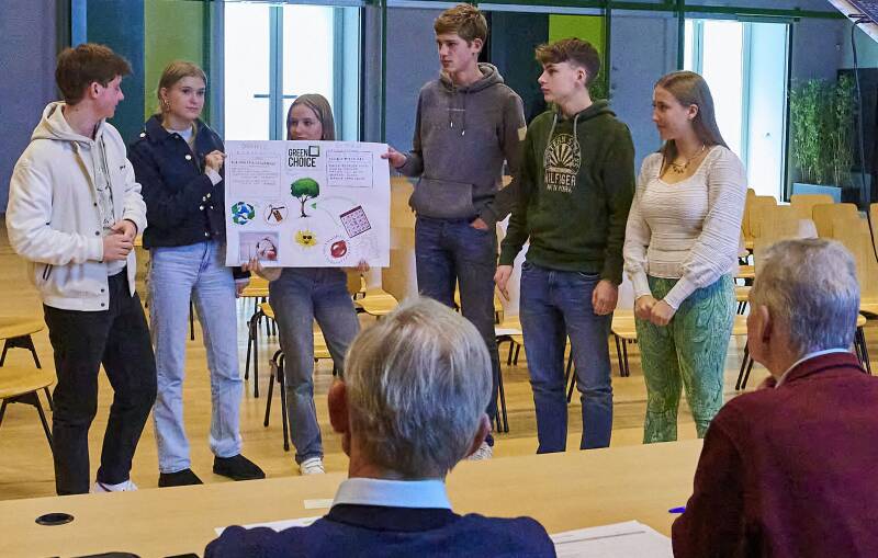 Echt geen gemakkelijk opgave! Maar er waren goede en originele oplossingen bedacht om de jongeren in weging te krijgen. De foto's links laten een paar mooie oplossingen zien. Zeker iets waar de wethouder Riet Austie die bij de prijsuitreiking aanwezig was, en later met de winnaars in gesprek ging, nog inspiratie kon opdoen.